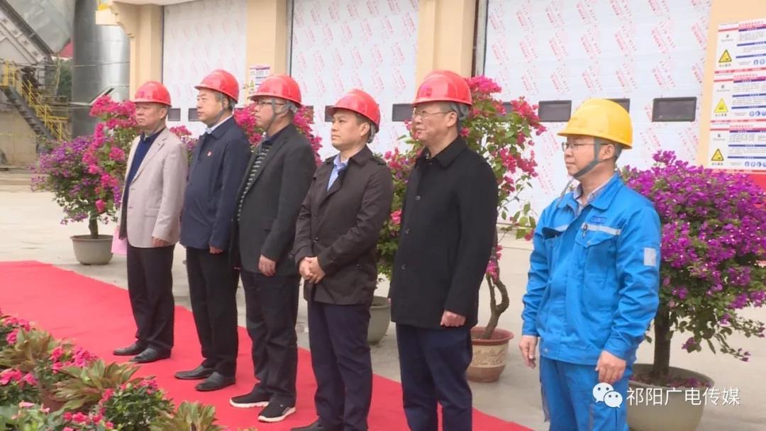 縣委書記周新輝出席并宣布祁陽海創環保科技有限責任公司水泥窯綜合利用固廢危廢項目竣工,市生態環境局局長譚立宏,縣人大常委會主任鄧曉陽,副縣長劉軍出席竣工儀式。