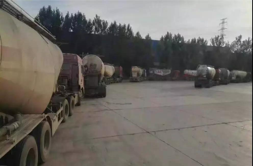 (某大型水泥廠門口排隊等著進廠的罐車)
