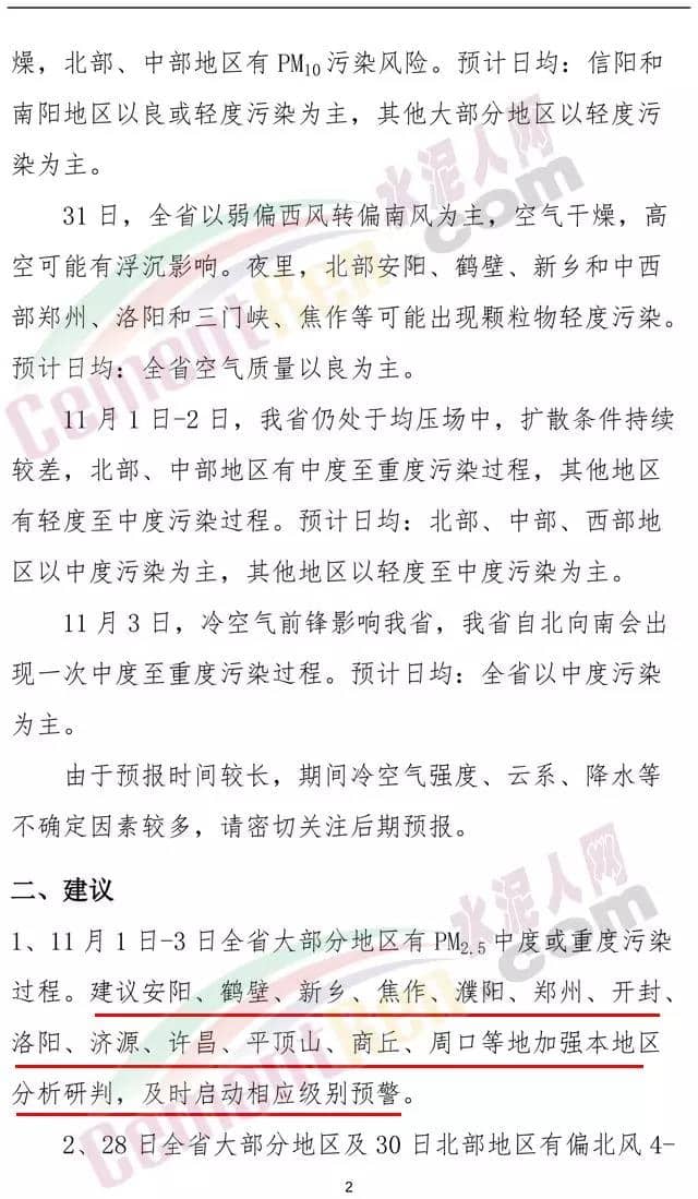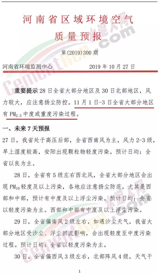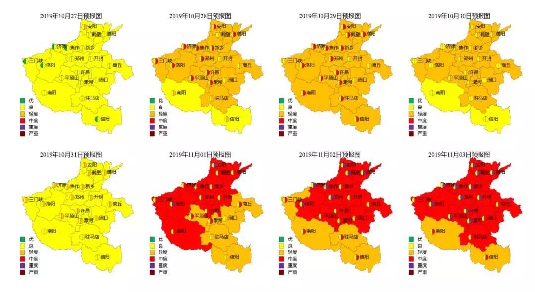 河南省《河南省區域環境空氣質量預報》第(2019)300期文件稱,11月1日-3日全省大部分地區有PM2.5中度或重度污染過程。建議安陽、鶴壁、新鄉、焦作、濮陽、鄭州、開封、洛陽、濟源、許昌、平頂山、商丘、周口等地加強本地區分析研判 ,及時啟動相應級別預警。
