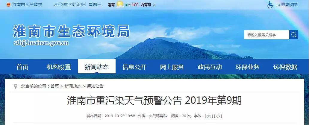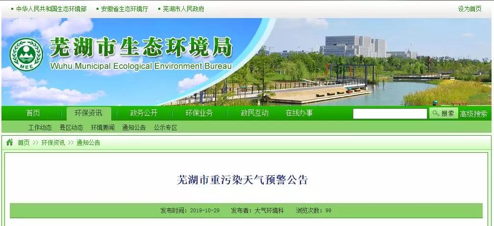 10月29日,安徽省生態環境廳發布了重污染天氣省級橙色預警。