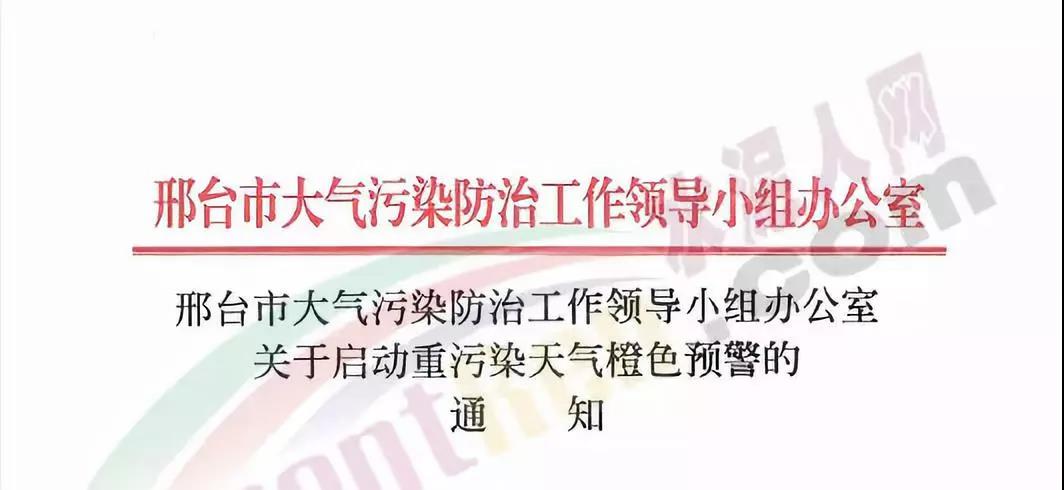 河北邢臺市大氣污染防治工作領導小組辦公室發布《關于啟動重污染天氣橙色預警的通知》要求,自10月30日8時起啟動重污染天氣橙色預警,按照《邢臺市重污染天氣應急預案》實施II級應急響應措施。并要求10月30日8時起嚴格落實橙色預警應急減排措施并執行到位,列入《關于進一步強化<邢臺市藍天保衛戰強化攻堅措施責任分工清單>工業企業管控的通知》文件的重點企業管理措施從嚴執行,處于停產狀態的企業和生產設備繼續停產。