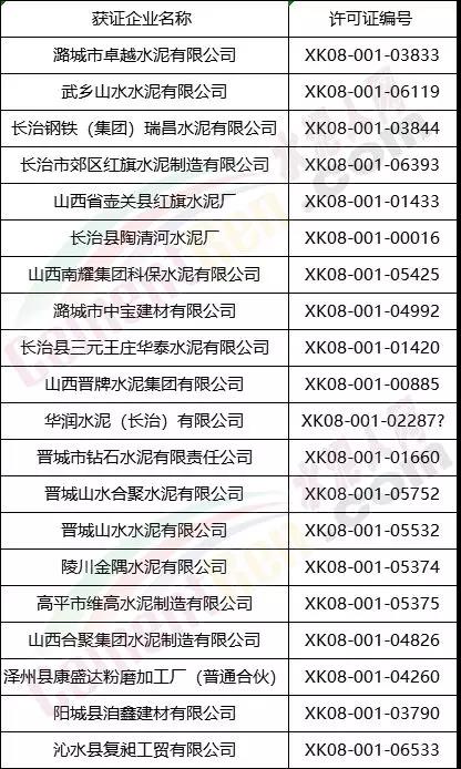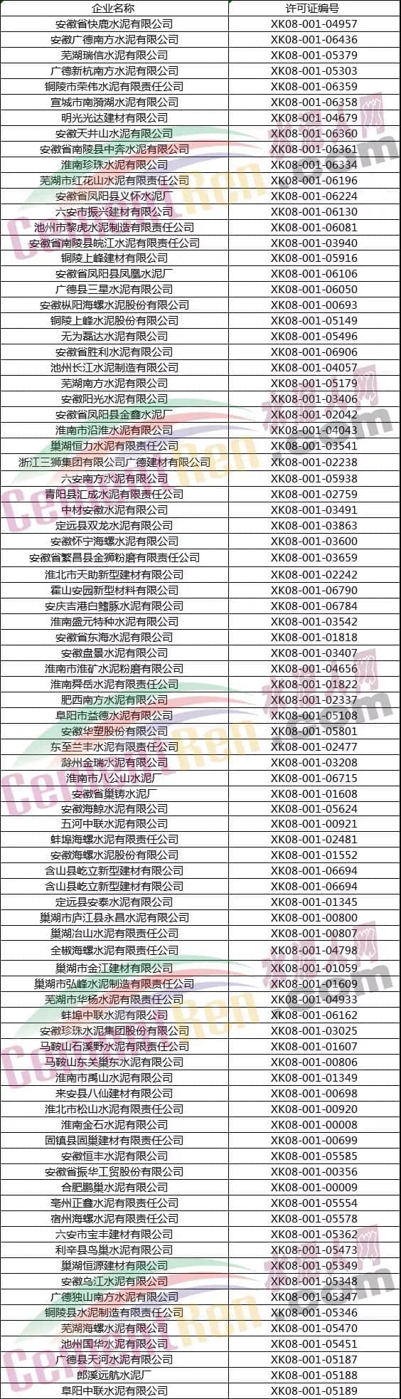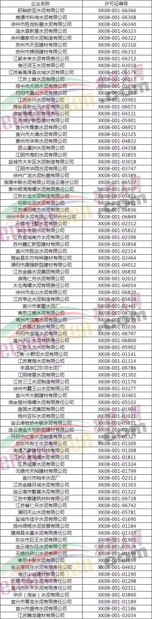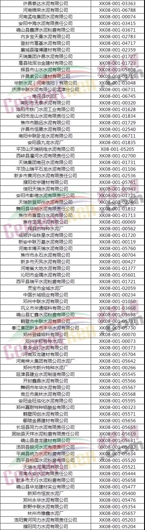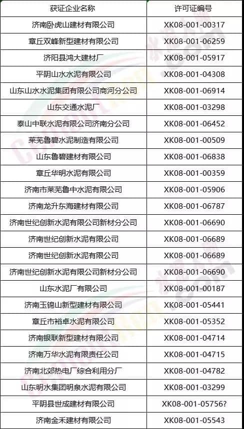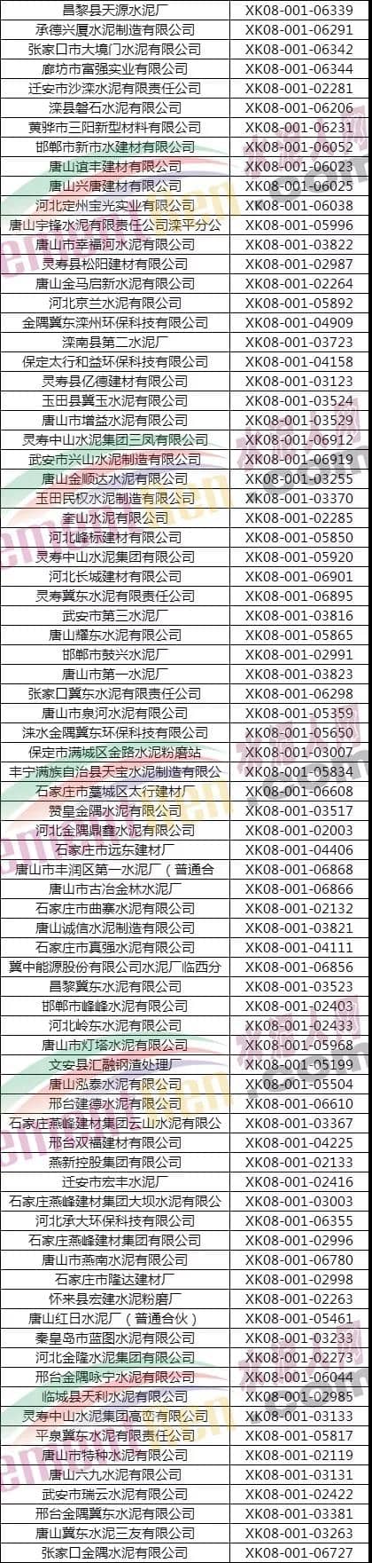 附山東、山西、河北、河南、江蘇、安徽省部分水泥企業名單。