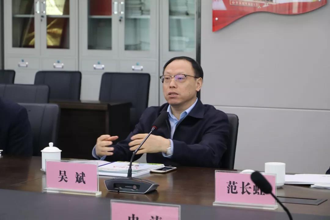 育才集團(tuán)董事長(zhǎng)史軍輝向安徽海螺水泥股份有限公司總經(jīng)理吳斌等一行介紹集團(tuán)公司概況和發(fā)展方向。