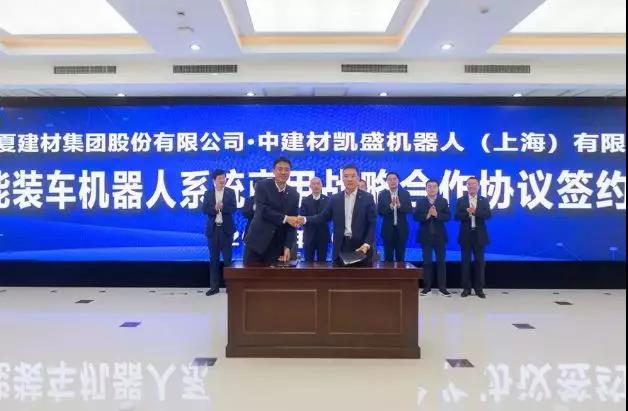 10月29日,寧夏建材集團股份有限公司和中建材凱盛機器人(上海)有限公司在銀川簽署智能裝車機器人系統商用戰略合作協議,中國建材水泥智能裝車發運系統投入商用儀式正式啟動。中國建材集團黨委常委、副總經理常張利,工業和信息化部原材料工業司建筑材料處處長岳全化,建筑材料工業信息中心副主任江源等出席儀式。寧夏建材集團總裁王玉林和凱盛機器人總經理陳坤作為雙方代表簽署合作協議。