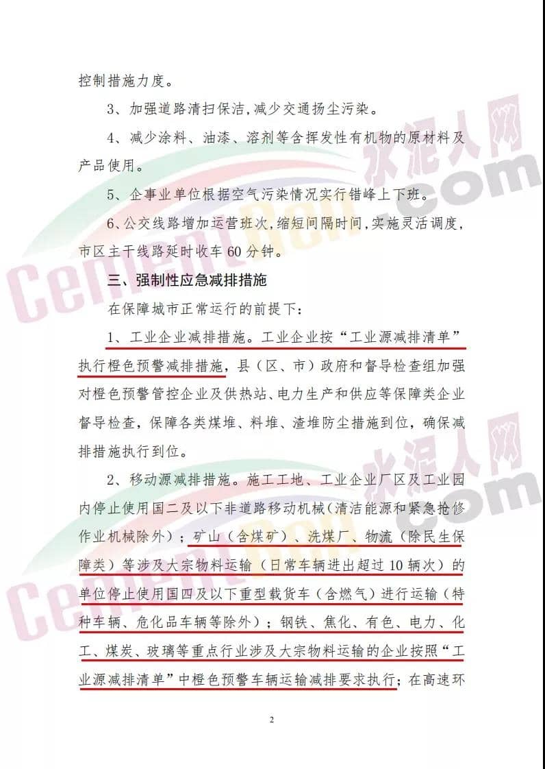 其中橙色以及以上預警天氣要求水泥生產企業窯磨全停,露天礦山全部停止開采,商砼攪拌站停產,大宗物資運輸停限運,除重點工程外所有工地停工。
