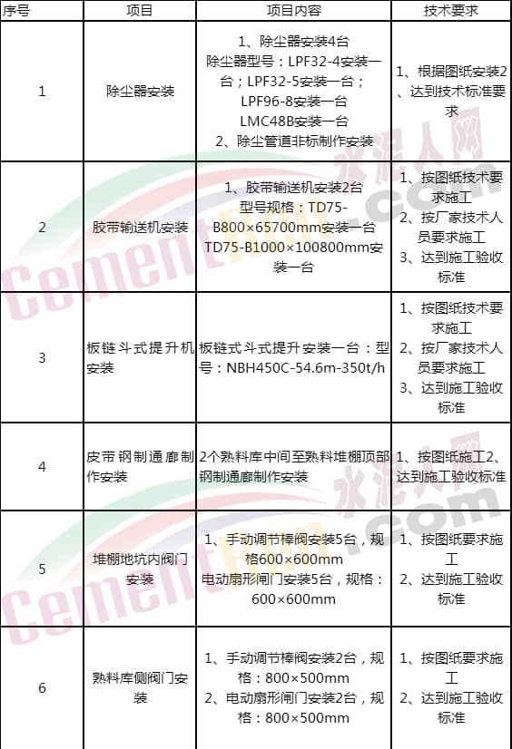 第一標(biāo)段:水泥分廠設(shè)備大修,具體內(nèi)容見下表: