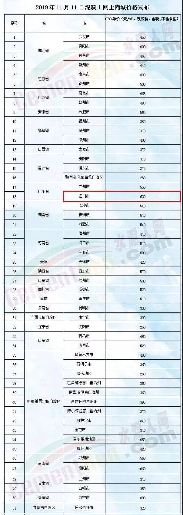 11月11日混凝土行業(yè)最大上市公司——中建西部建設(shè)在自己的電商平臺發(fā)布了最新的混凝土報價。