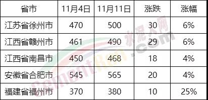 小編注意到,本周商品混凝土價格與上周相比多有上漲。其中江蘇省徐州市C30混凝土較上周上調(diào)了30元/方,江西省贛州市較上調(diào)上調(diào)了29元/方,漲幅均達(dá)到6%。