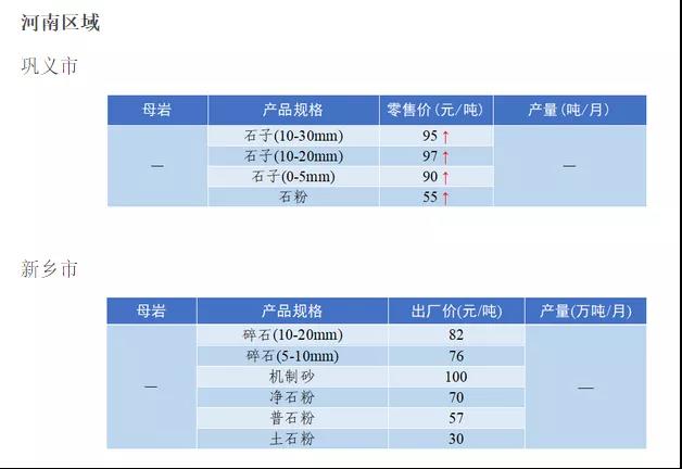 砂石方面因供需失衡,多區(qū)域出現(xiàn)較大缺口和供需失衡現(xiàn)象。相關(guān)統(tǒng)計數(shù)據(jù)顯示,河南省建筑用砂年需求量約2.1億噸,而全省經(jīng)批準(zhǔn)許可的河砂開采量僅4000萬噸左右,建筑用砂缺口達(dá)1.7億噸。缺口高達(dá)81%,砂石供需矛盾愈發(fā)突出。砂石協(xié)會近期公布的數(shù)據(jù)顯示,河南區(qū)域機(jī)制砂出廠價接近100元/噸。各類石子均現(xiàn)價格上漲。