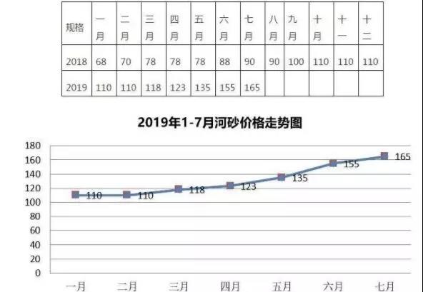 在湖北黃岡,河砂價格從2018年1月的每噸68元上漲到今年7月的165元,上漲幅度高達(dá)143%;