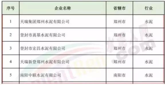 水泥人網小編注意到河南省2019年度綠色環保引領企業名單中包括天瑞集團鄭州水泥有限公司、 登封市嵩基水泥有限公司、 登封市宏昌水泥有限公司、天瑞新登鄭州水泥有限公司、 南陽中聯水泥有限公司等五家水泥行業企業。