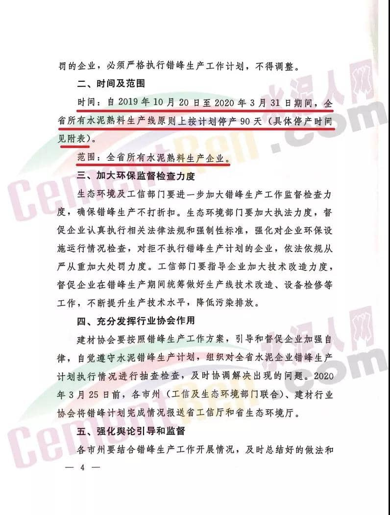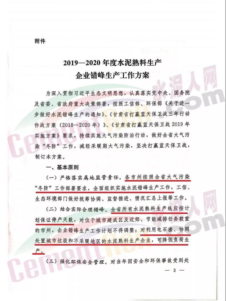 根據(jù)新疆建材行業(yè)協(xié)會發(fā)布的關(guān)于2019-2020年水泥行業(yè)錯峰生產(chǎn)的通知要求,全疆所有水泥生產(chǎn)企業(yè)(含兵團(tuán))按文件要求執(zhí)行錯峰停窯。除和田地區(qū)從2019年12月1日零時起,其他各地州(市)從2019年11月1日零時起執(zhí)行冬季采暖期錯峰生產(chǎn),停窯時間少于采暖期時間應(yīng)予順延或補(bǔ)齊,2019-2020年具體錯峰停容時間各地有所差異,其他應(yīng)對重污染天氣時要按應(yīng)急響應(yīng)機(jī)制要求停窯。結(jié)合各地冬季采暖季、春季揚(yáng)沙天氣等減排環(huán)保要求,以及當(dāng)?shù)厮喈a(chǎn)能過剩、電石渣水泥不同生產(chǎn)等實(shí)際情況,依據(jù)《關(guān)于2018-2019年冬季水泥錯峰生產(chǎn)的通知》(新韁)錯峰停窯時間。