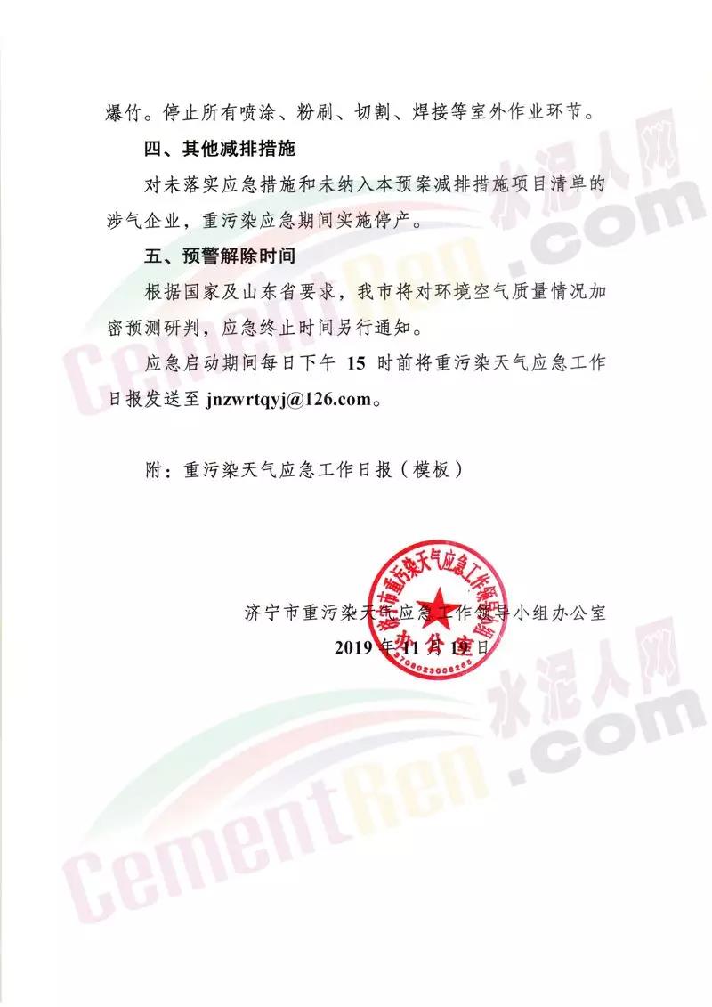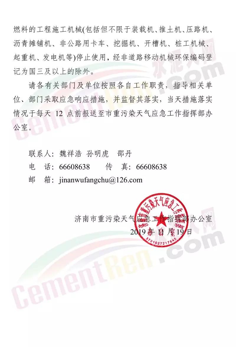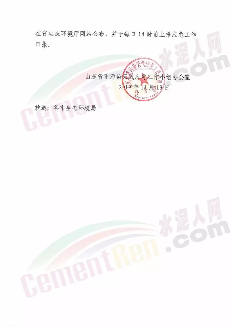 按照提前預警的原則,建議濟南、淄博 、棗莊、東營、維坊、濟寧、泰安、日照、臨沂、德州、聊城、濱州、荷澤13市根據空氣質量預測會商結果,于11月20日零時前發布預警,11月21日零時前應動應急響應。預警期間對工業企業要按照最新修訂的應急減排清單采取限產停產等減排措施;對建筑 工地等揚塵源停止產能揚塵環節的建筑施工作業及渣土運輸;加強重型柴油貨車管控措施,最大限度減少上路運輸行駛等。工函原文如下: