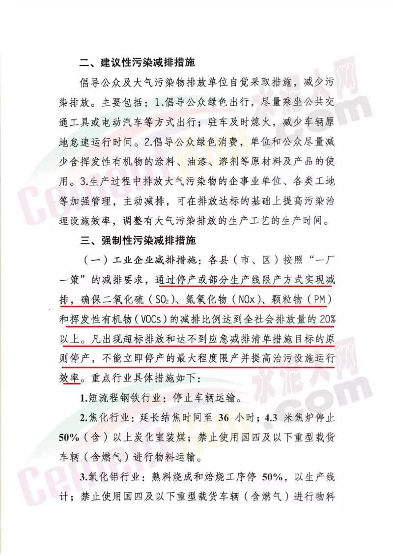 水泥行業,水泥熟料生產線停產。協同處置城市生活垃圾或危險廢物的企業,日處理生活垃圾與污染總量低于400噸(含)、處理有毒有害廢棄物總量低于熟料產能4%(含)的生產線,停產。水泥制品、粉磨站停產;禁止使用國四及以下重型載貨車輛(含燃氣)進行物料運輸。