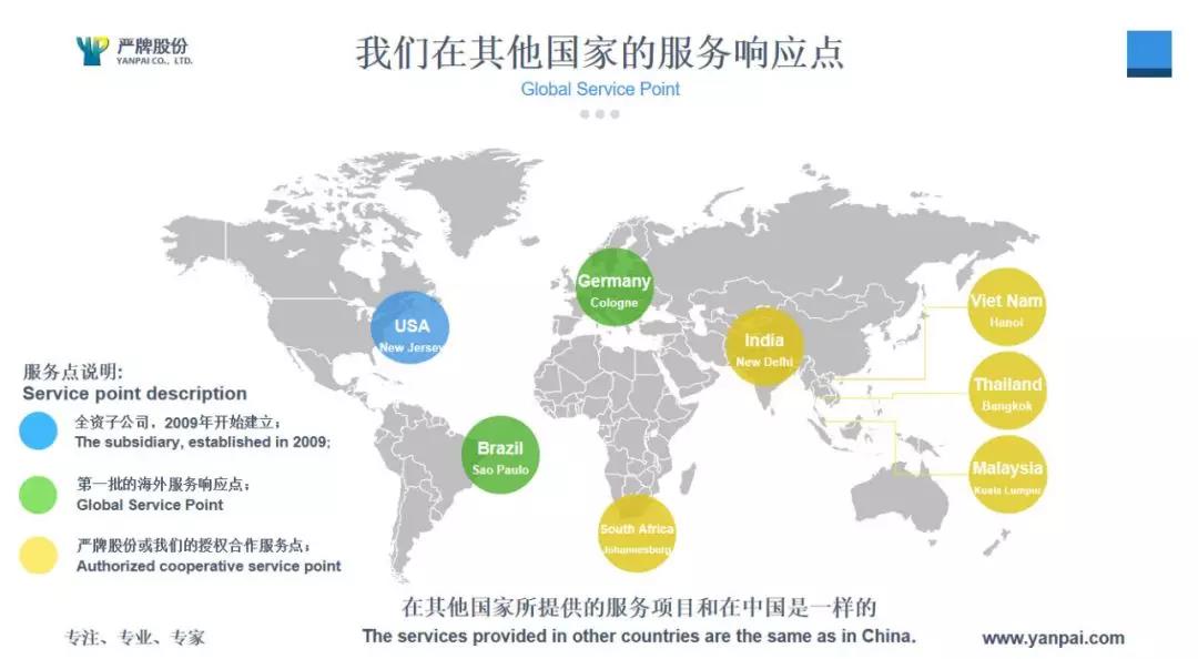 ▲全球服務響應 據水泥人網了解,嚴牌股份自20世紀90年代開始構建全球過濾材料供需體系,著力于與全球優秀的過濾生產商合作。逐步在德國,意大利,美國等老牌濾料生產基地找到了可靠的合作伙伴。在有序的競爭和交流環境中,嚴牌股份逐步在全球過濾市場占有一席之地。