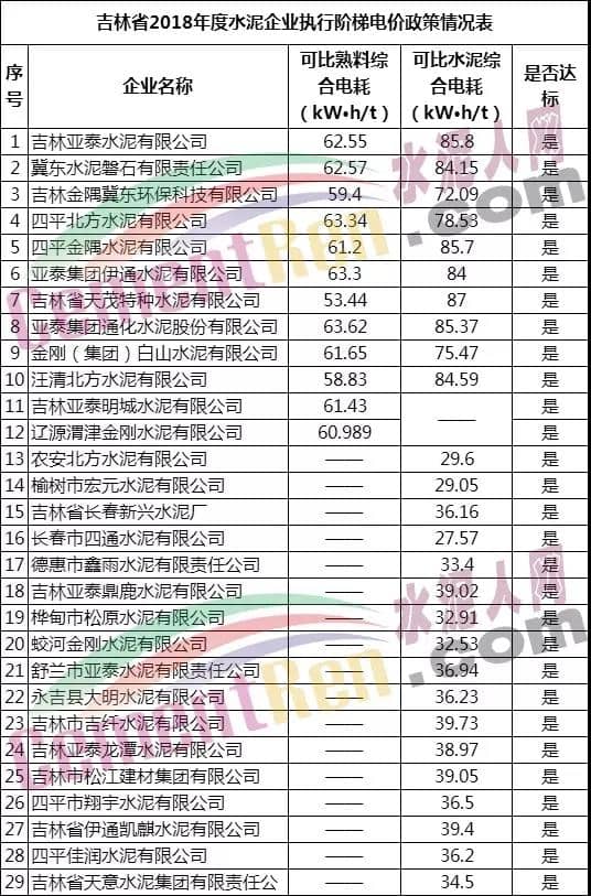 水泥人網消息:11月25日,吉林省工業信息化廳發布了《關于吉林省2018年度水泥可比綜合電耗情況公示》稱,根據《國家發改委 工信部關于水泥企業用電實行階梯電價政策有關問題的通知》(發改價格〔2016〕75號)、省工信廳組織省節能監察中心對吉林省2018年度55戶水泥企業可比水泥(熟料)綜合電耗進行了專項監察,現將監察結果予以公示,接受社會監督。公示時間是2019年11月25日至12月1日。