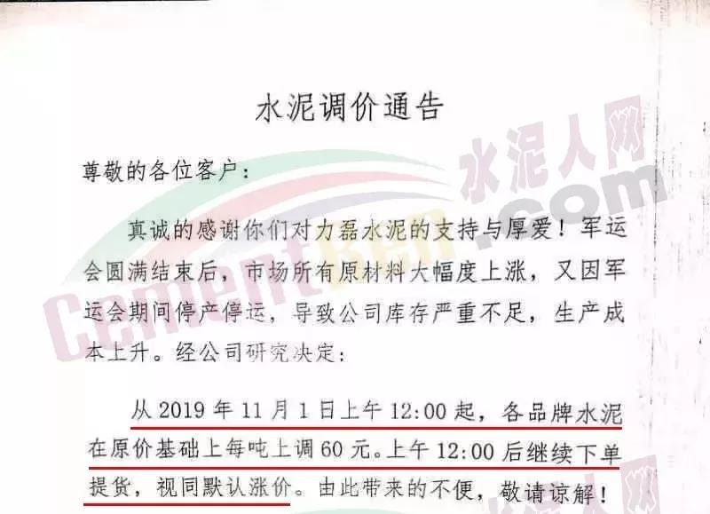 錦榮水泥自10月31日以來(lái)水泥價(jià)格連續(xù)上漲11次,其中從11月10日到11月18日,9天時(shí)間該企業(yè)連發(fā)了9張調(diào)價(jià)函。經(jīng)過(guò)11輪上漲,該企業(yè)P.O42.5水泥累計(jì)漲價(jià)高達(dá)300元/噸,目前P.O42.5散裝含票出廠價(jià)高達(dá)680元/噸,加上運(yùn)費(fèi)到位核心區(qū)域價(jià)格已突破700元/噸。 河南三門峽市澠池仰韶水泥廠自11月8日起連發(fā)三份漲價(jià)函,截止11月13日,澠池仰韶水泥42.5級(jí)散裝水泥出廠價(jià)為610元/噸,52.5級(jí)散裝水泥出廠價(jià)為710元/噸。近期河南區(qū)域水泥價(jià)格又出現(xiàn)持續(xù)暴跌現(xiàn)象,兩天就跌了150元/噸,而且近期還在向下調(diào)整,跌價(jià)空間幾乎把之前的漲幅全部抹平。這種大漲大跌的市場(chǎng)環(huán)境,是極為不正常的。福建區(qū)域粉磨站“沒(méi)米了”,漲30元/噸福建區(qū)域熟料供應(yīng)緊張,部分粉磨站企業(yè)通知無(wú)水泥可賣。某水泥粉磨企業(yè)負(fù)責(zé)人對(duì)水泥人網(wǎng)表示:“沒(méi)米了!” 福建區(qū)域企業(yè),一直都是從廣東及廣西采購(gòu)熟料,近來(lái)枯水加上治超,熟料到位價(jià)格上漲。福建區(qū)域多家企業(yè)便隨之上調(diào)水泥價(jià)格,上調(diào)幅度30元/噸。天津漲價(jià),拉開了京津冀區(qū)域的漲價(jià)的序幕21日區(qū)域主導(dǎo)企業(yè)集體上調(diào)水泥價(jià)格。北京金隅水泥經(jīng)貿(mào)有限公司天津分公司發(fā)調(diào)價(jià)通知,由于目前企業(yè)受環(huán)保錯(cuò)峰、道路運(yùn)輸治理等因素的影響,導(dǎo)致企業(yè)水泥庫(kù)存較低;同時(shí),礦粉等原材料價(jià)格持續(xù)走高、京津冀東地區(qū)環(huán)保力度加大,環(huán)保投入增加,水泥生產(chǎn)成本大幅上漲。企業(yè)自11月21日8時(shí)起,PO42.5及以上規(guī)格散裝水泥產(chǎn)品出廠價(jià)格在原價(jià)格基礎(chǔ)上上調(diào)20元/噸。 陜西是兩輪漲價(jià),共漲60元/噸,遭遇河南水泥車“搶購(gòu)”本月15日前后陜西關(guān)中地區(qū)冀東,聲威,堯柏等多家主導(dǎo)企業(yè)通知上調(diào)水泥價(jià)格,漲幅30元/噸。18日前后大批河南水泥運(yùn)輸車到陜西關(guān)中區(qū)域調(diào)運(yùn)水泥,令區(qū)域內(nèi)庫(kù)存減少,部分企業(yè)再次上調(diào)30元/噸。一片漲勢(shì)之中唯貴州區(qū)域遭遇“寒冬”,水泥價(jià)格低到200元以下,甚至有局部區(qū)域出廠價(jià) 180元/噸左右。1200元~180元,1020元的差價(jià),是水泥行業(yè)冰火兩重天的現(xiàn)狀。目前的水泥價(jià)格似乎已處在了“失控”邊緣。部分企業(yè)又開啟了大票模式,在今年斷供后又開售2020年的水泥期貨。與上年相比,華東上海周邊區(qū)域似乎較平靜。上年末,華東區(qū)域水泥價(jià)高,下游競(jìng)價(jià)銷售,出現(xiàn)千元左右一噸的水泥。后隨著華南廣西區(qū)域熟料和水泥到位,價(jià)格才逐步趨于平穩(wěn)。今年1季度下游施工企業(yè)提前備貨,也為今年華東區(qū)域的市場(chǎng)穩(wěn)定提前做了“鋪墊”。另?yè)?jù)消息稱,華東沿海區(qū)域今年以來(lái)一直有大企業(yè)采購(gòu)進(jìn)口熟料到港,區(qū)域內(nèi)熟料供應(yīng)平穩(wěn),繼而水泥價(jià)格也處于穩(wěn)中有漲態(tài)勢(shì)。