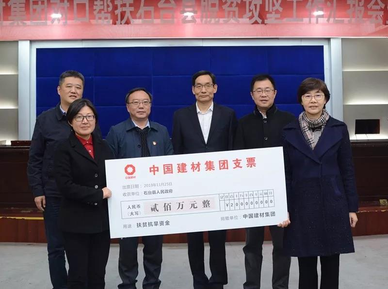 11月25日至26日,中國建材集團黨委書記、董事長周育先赴安徽池州市石臺縣調研集團扶貧工作,與池州市委書記王宏、市長操龍燦進行了會談,現場調研了集團幫扶援建項目,并出席了扶貧工作座談會暨捐贈儀式。集團黨委副書記孫力實參加了調研。