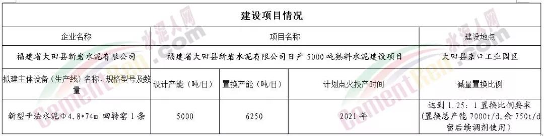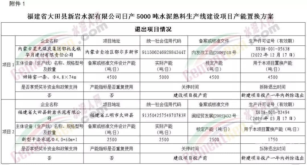 附件:1.福建省大田縣新巖水泥有限公司日產5000噸水泥熟料生產線建設項目產能置換方案