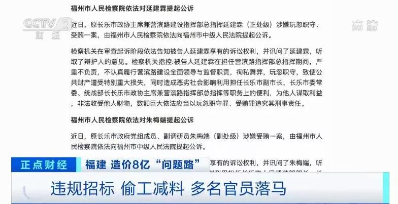 違規(guī)招標(biāo) 偷工減料,多名官員落馬營濱路通車沒多久,道路沉降、路面裂縫、坑洞等問題,就引來當(dāng)?shù)厝罕姀娏也粷M,老百姓的多次投訴引起了相關(guān)部門的高度重視。2018年,福州市紀(jì)監(jiān)委等相關(guān)部門介入調(diào)查。日前,福州市人民檢察院發(fā)布通報,依法對長樂營濱路建設(shè)指揮部兩位涉嫌貪腐官員提起公訴。當(dāng)?shù)卣俜焦迹瑺I濱路存在違規(guī)招標(biāo)、偷工減料等嚴(yán)重問題。根據(jù)當(dāng)?shù)卣衲?1月公布的調(diào)查結(jié)果,營濱路不僅存在違規(guī)招標(biāo)、大面積圍串標(biāo)等問題,而且工程監(jiān)管嚴(yán)重缺位。