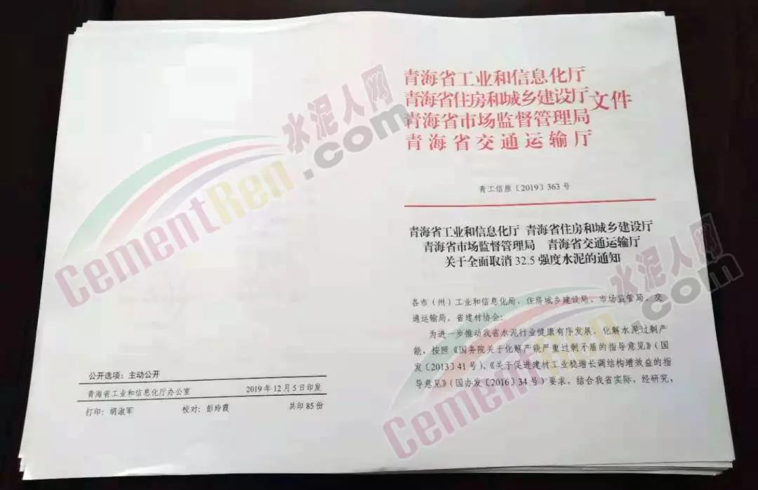 為進(jìn)一步推動(dòng)我省水泥行業(yè)健康有序發(fā)展,化解水泥過剩產(chǎn)能,按照《國務(wù)院關(guān)于化解產(chǎn)能嚴(yán)重過剩矛盾的指導(dǎo)意見》(國發(fā)(2013]41號(hào))、《關(guān)于促進(jìn)建材工業(yè)穩(wěn)增長調(diào)結(jié)構(gòu)增效益的指導(dǎo)意見》(國辦發(fā)[2016]34號(hào))要求,結(jié)合我省實(shí)際,經(jīng)研究,自2020年1月31日起,青海省內(nèi)嚴(yán)禁生產(chǎn)、銷售、運(yùn)輸、使用32.5強(qiáng)度水泥。