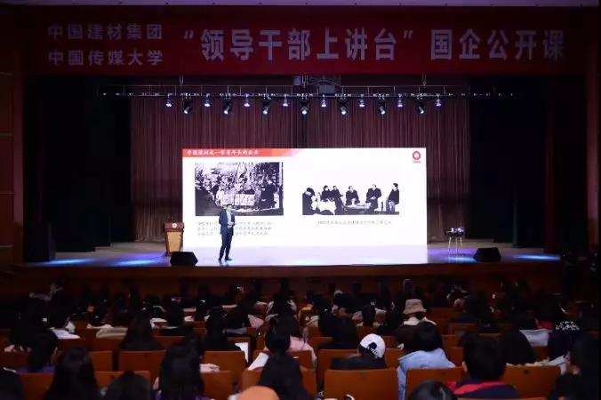 中國建材集團(tuán)董事會辦公室主任干志平、黨群工作部主任苗小玲,中國傳媒大學(xué)信息與通信工程學(xué)院黨委書記李增瑞、經(jīng)濟(jì)與管理學(xué)院黨委書記金雪濤、人文學(xué)院黨委書記趙洪斌、數(shù)據(jù)科學(xué)與智能媒體學(xué)院及黨政辦公室、學(xué)生工作部相關(guān)負(fù)責(zé)同志,中國建材集團(tuán)有關(guān)企業(yè)員工和中國傳媒大學(xué)2019級本專科生、研究生1500余人參加報告會。