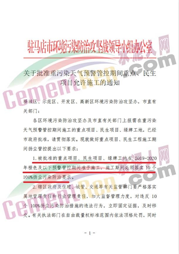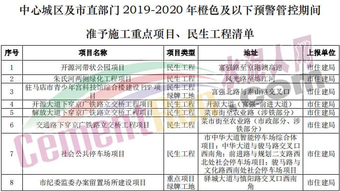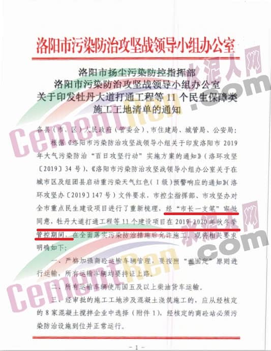 近日,河南省洛陽市發布了《關于印發牡丹大道打通工程等11個民生保障類施工工地清單通知》、駐馬店市發布了《關于批準重污染天氣預警管控期間重點、民生項目允許施工的通知》。