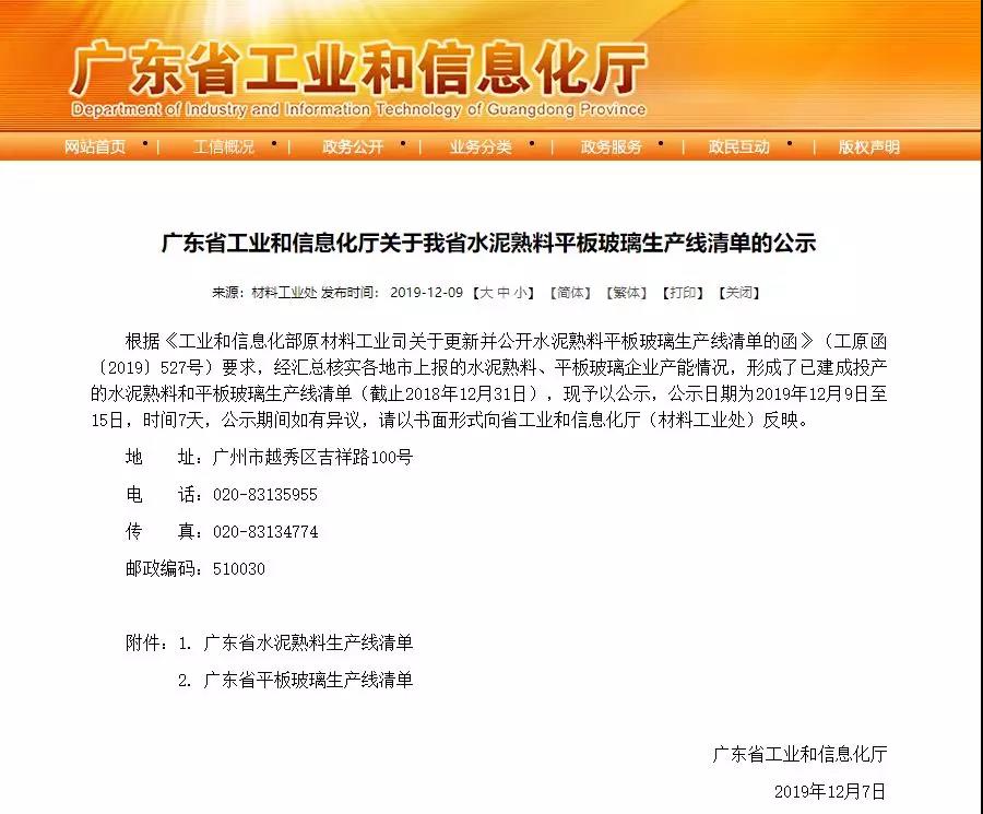 按照《工業和信息化部辦公廳國家發展改革委辦公廳關于嚴肅產能置換嚴禁水泥平板玻璃行業新增產能的通知》(工信廳聯原〔2018〕57號)和《工業和信息化部關于更新并公開水泥平板玻璃生產線清單的函》(工原函〔2018〕382號),要求各地區將截止到上年底的水泥熟料、平板玻璃生產線清單予以公告,并由社會公眾進行監督。詳情如下: