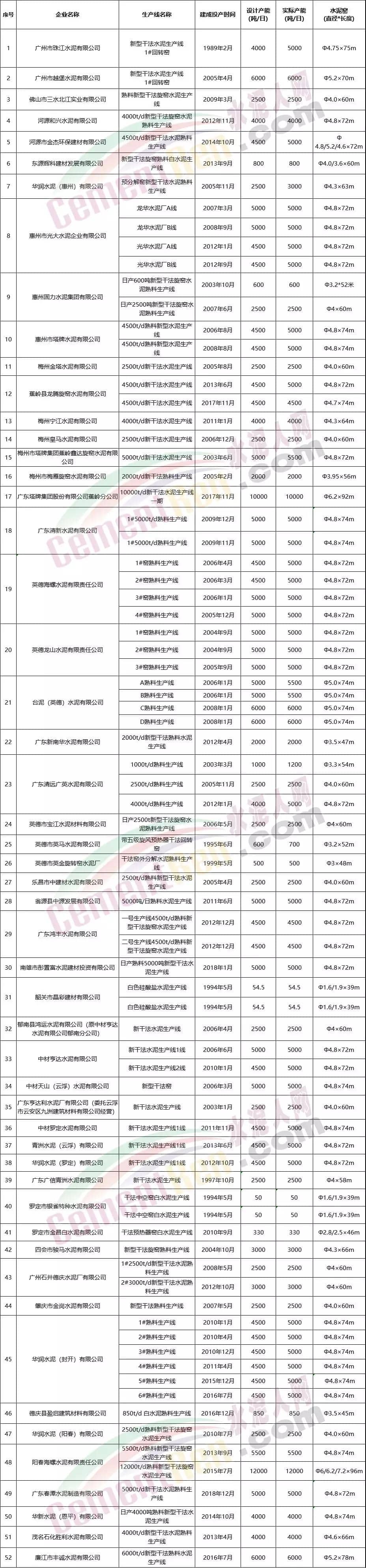 廣東省水泥熟料生產線清單