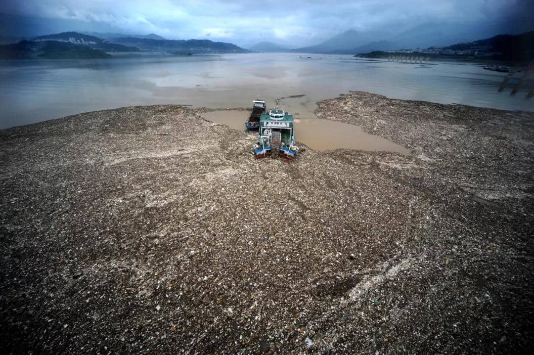圖為作業船正在打撈長江漂浮物