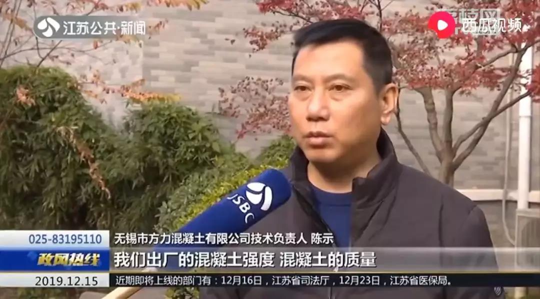 無錫市房力混凝土有限公司技術負責人陳示則表示,他們出廠的混凝土強度混凝土質量肯定是沒有問題的。江蘇中博建設有限公司總經理趙富民稱,廠家給出具了(承諾書)肯定沒問題,那事實上是沒問題嗎?