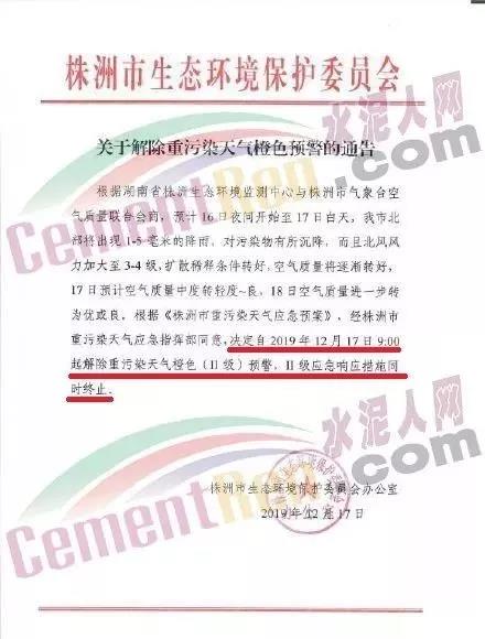 12月17日株洲市生態環境保護委員會辦公室發布了《關于解除重污染天氣橙色預警的通告》稱,根據湖南省株洲生態環境監測中心與株洲市氣象臺空氣質量聯合會商,預計16日夜間開始至17日白天,株洲市北部將出現1-5毫米的降雨,對污染物有所沉降,而且北風風力加大至3-4級,擴散稀釋條件轉好,空氣質量將逐漸轉好,17日預計空氣質量中度轉輕度~良,18日空氣質量進一步轉為優或良。根據《株洲市重污染天氣應急預案》,經株洲市重污染天氣應急指揮部同意,決定自2019年12月17日9:00起解除重污染天氣橙色(II級)預警,II級應急響應措施同時終止。