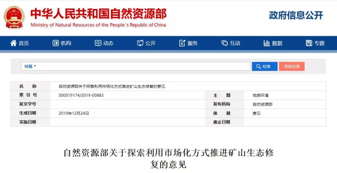 日前,自然資源部發(fā)布《關(guān)于探索利用市場化方式推進礦山生態(tài)修復(fù)的意見》(以下簡稱“《意見》”)稱,為解決礦山生態(tài)修復(fù)歷史欠賬多、現(xiàn)實矛盾多、投入不足等突出問題,按照黨的十九大“構(gòu)建政府為主導(dǎo)、企業(yè)為主體、社會組織和公眾共同參與的環(huán)境治理體系”的要求,堅持“誰破壞、誰治理”“誰修復(fù)、誰受益”原則,通過政策激勵,吸引各方投入,推行市場化運作、科學(xué)化治理的模式,加快推進礦山生態(tài)修復(fù),制定本意見。