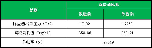 窯頭排風(fēng)機(jī)改造前后數(shù)據(jù)對(duì)比