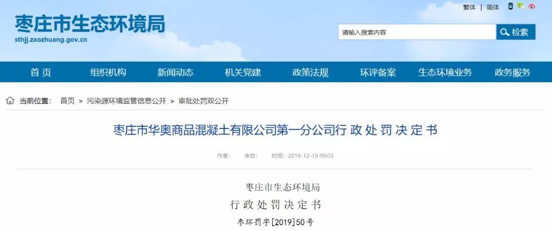 日前,棗莊市生態(tài)環(huán)境局發(fā)布了多份行政處罰決定書,其中有山東泉興中聯(lián)水泥有限公司、棗莊市恒仁水泥有限公司、棗莊市華奧商品混凝土有限公司等8家企業(yè)因環(huán)境污染被處罰,累計罰款共81.5萬元。