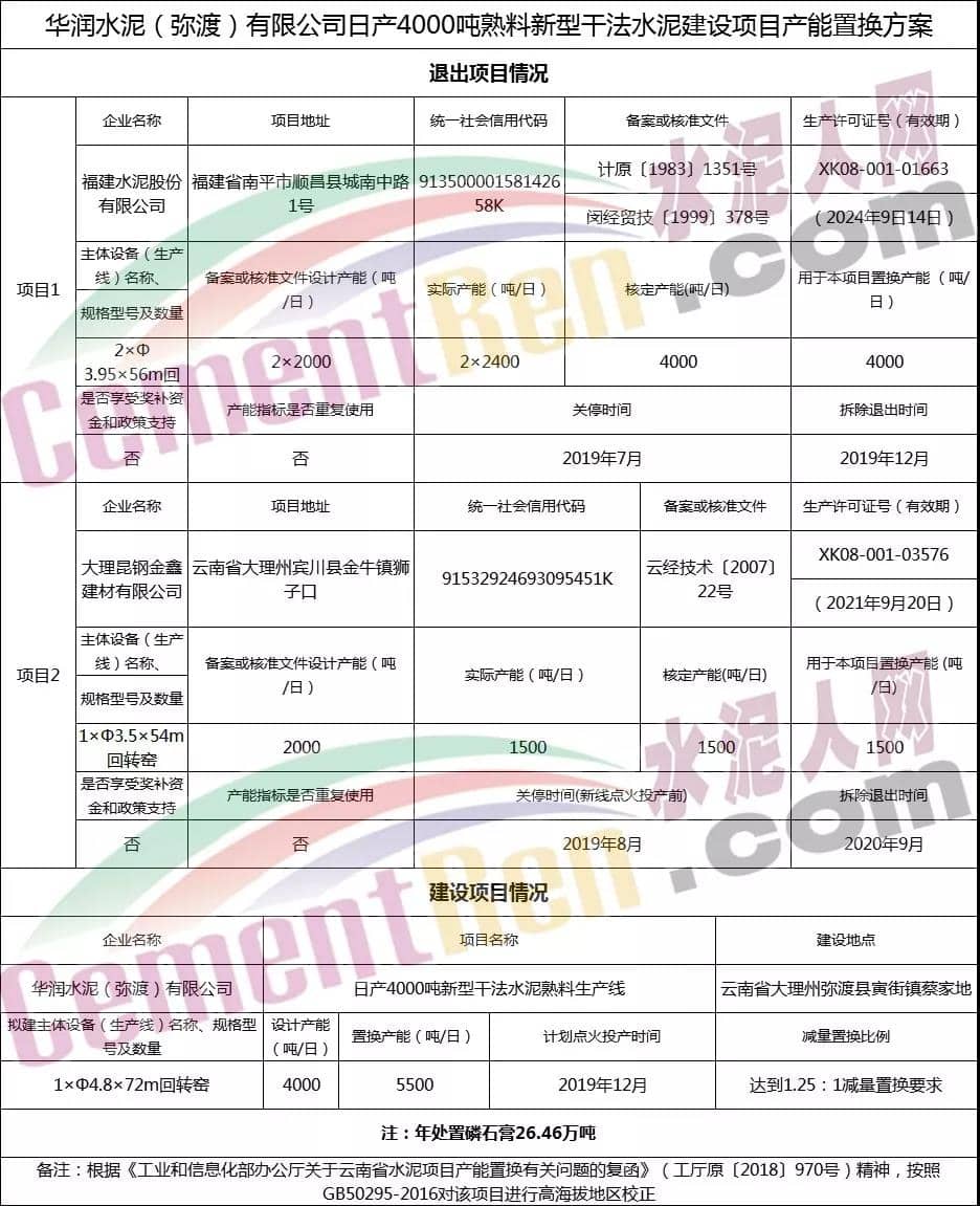 12月25日,云南省工業(yè)信息化廳發(fā)布了《華潤(rùn)水泥(彌渡)有限公司日產(chǎn)4000噸熟料新型干法水泥建設(shè)項(xiàng)目產(chǎn)能置換方案》的公告,原文如下: