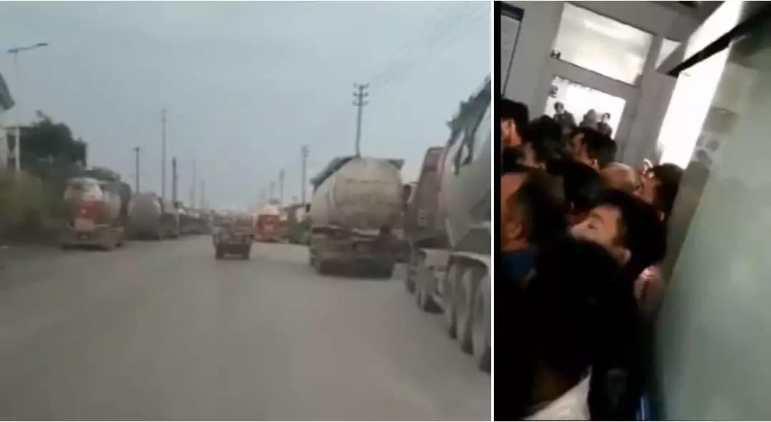 圖:海螺水泥廠區(qū)外車排隊,廠區(qū)內(nèi)人排隊