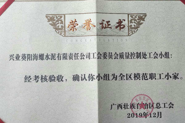 近日,自治區總工會公布全區模范職工之家、全區模范職工小家名單,全區105個基層工會榮獲“2019年全區模范職工小家”榮譽稱號,興業葵陽海螺水泥有限責任公司工會委員會質量控制處工會小組獲此殊榮,這是公司首獲此項榮譽。