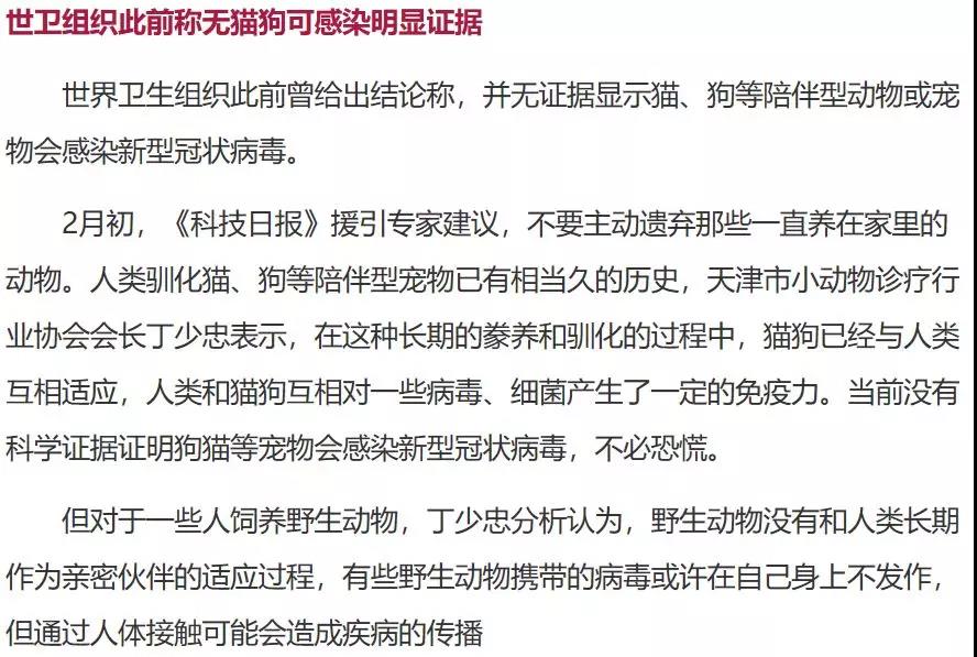 另?yè)?jù)香港特區(qū)政府4日晚間發(fā)布的新聞公報(bào)消息,香港漁護(hù)署發(fā)言人還強(qiáng)調(diào),現(xiàn)時(shí)沒(méi)有證據(jù)顯示寵物會(huì)傳播新冠病毒,或會(huì)因此生病。除保持良好衛(wèi)生習(xí)慣外,寵物畜養(yǎng)人毋須過(guò)份憂慮。在任何情況下,絕不應(yīng)棄養(yǎng)寵物。