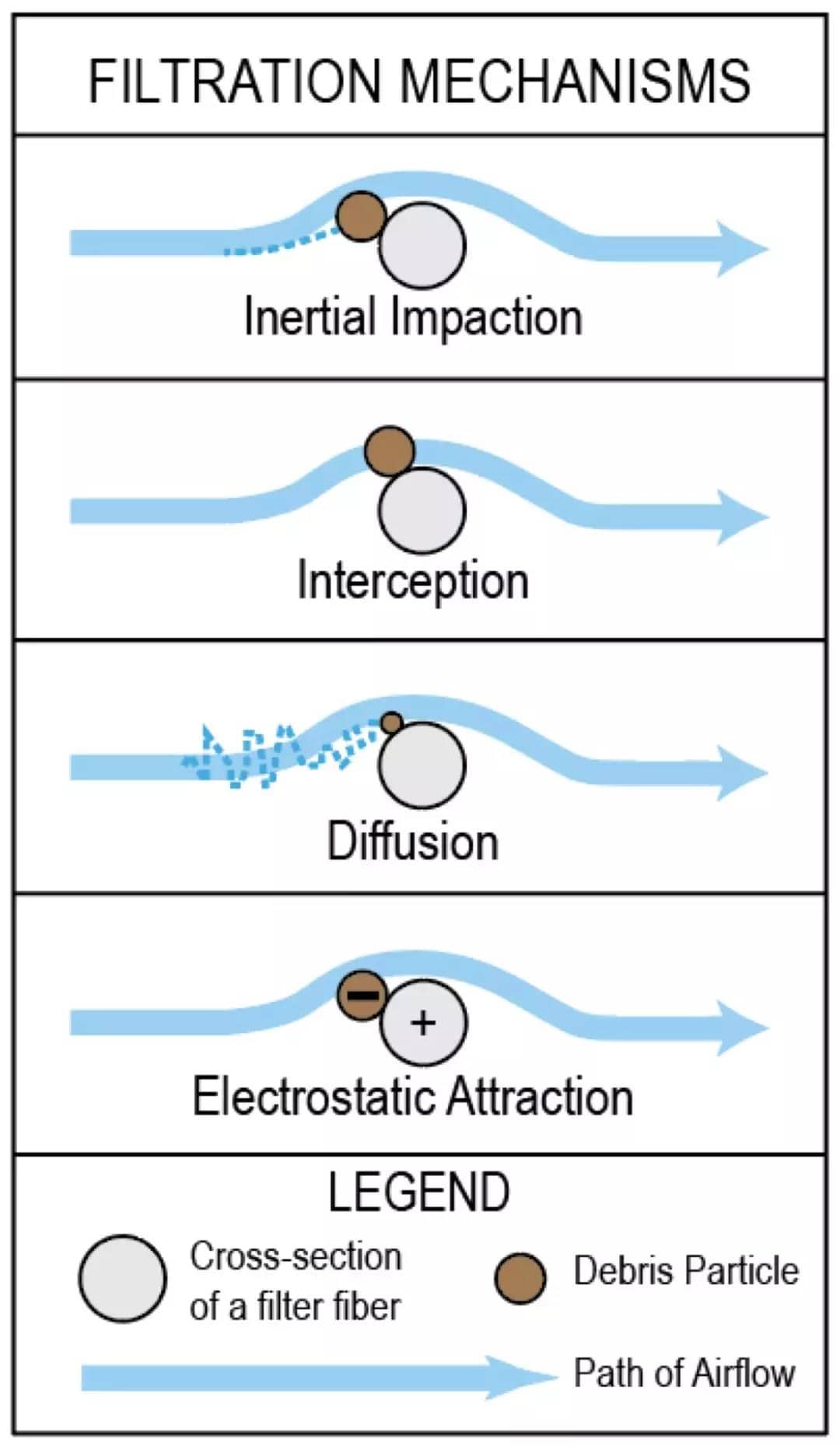 看到圖片你們是不是會擔(dān)憂,熔噴布空隙這么大,是怎么過濾環(huán)境中的病毒的呢?雖然新型冠狀病毒尺寸很小,在 100 納米(0.1微米)左右,但是病毒無法獨立存在,其傳播途徑主要有分泌物和打噴嚏時的飛沫,飛沫的大小在 5 微米左右,這是其一,第二,熔噴布本質(zhì)上是一種纖維過濾器,含有病毒的飛沫靠近熔噴布后,也會被靜電吸附在表面,無法透過。