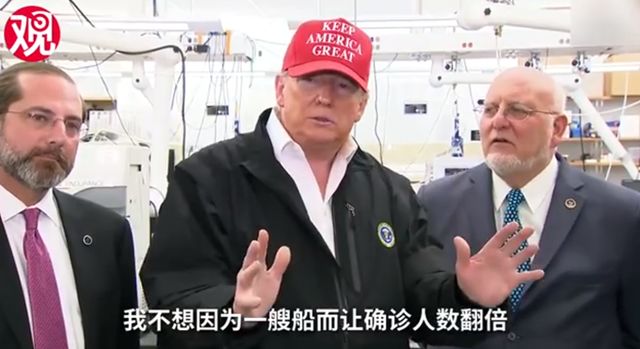 特朗普6日在亞特蘭大視察疾病控制與預(yù)防中心時(shí)表示:“我更傾向于讓他們(郵輪乘客)留在船上,但是我也理解其他人想要讓他們下船,到陸地進(jìn)行隔離。”