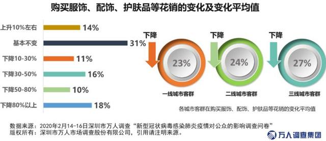 此外,服裝和化妝品方面,很多品牌關閉了中國內地部分門店以減少成本,并逐步將重心轉至線上。數據顯示,由于服飾和化妝品仍可從線上渠道購買,31%的市民表示支出整體維持不變,但是由于快遞停運、物流周期過長等原因,整體購物體驗并不好,55%的市民表示支出有所下降,其中下降超過80%的占比達到18%。