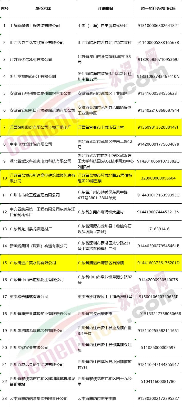23家移出安全生產失信聯合懲戒“黑名單”單位名單中包括名單中,包括位于江西省宜春市豐城市石上村的江西贛能股份有限公司豐城三期電廠;位于廣東省清遠市清新區石潭鎮廣東清遠廣英水泥有限公司等企業。
