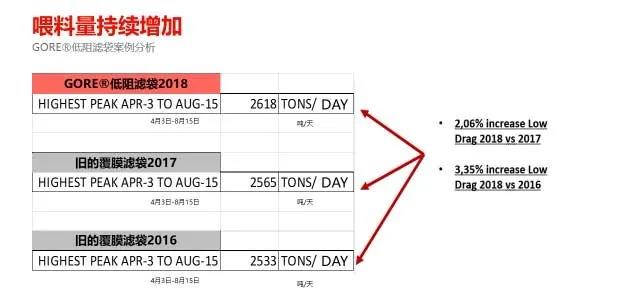 一共使用GORE®低阻濾袋2,856 條。持續記錄分析風機轉速、煙氣流量、系統壓差,并連續3年對產能及顆粒物排放數據進行對比分析:2016, 2017, 2018(4月3日至8月15日)。
