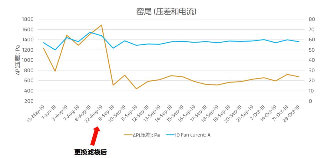 壓差——2# 窯尾 (2019年8月運行) 窯喂料量提高 16%