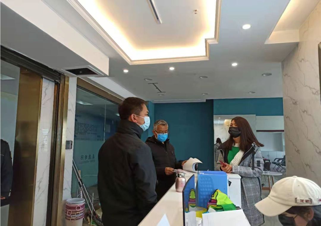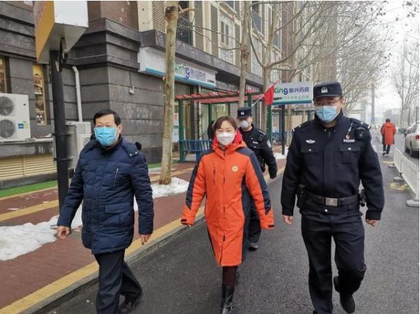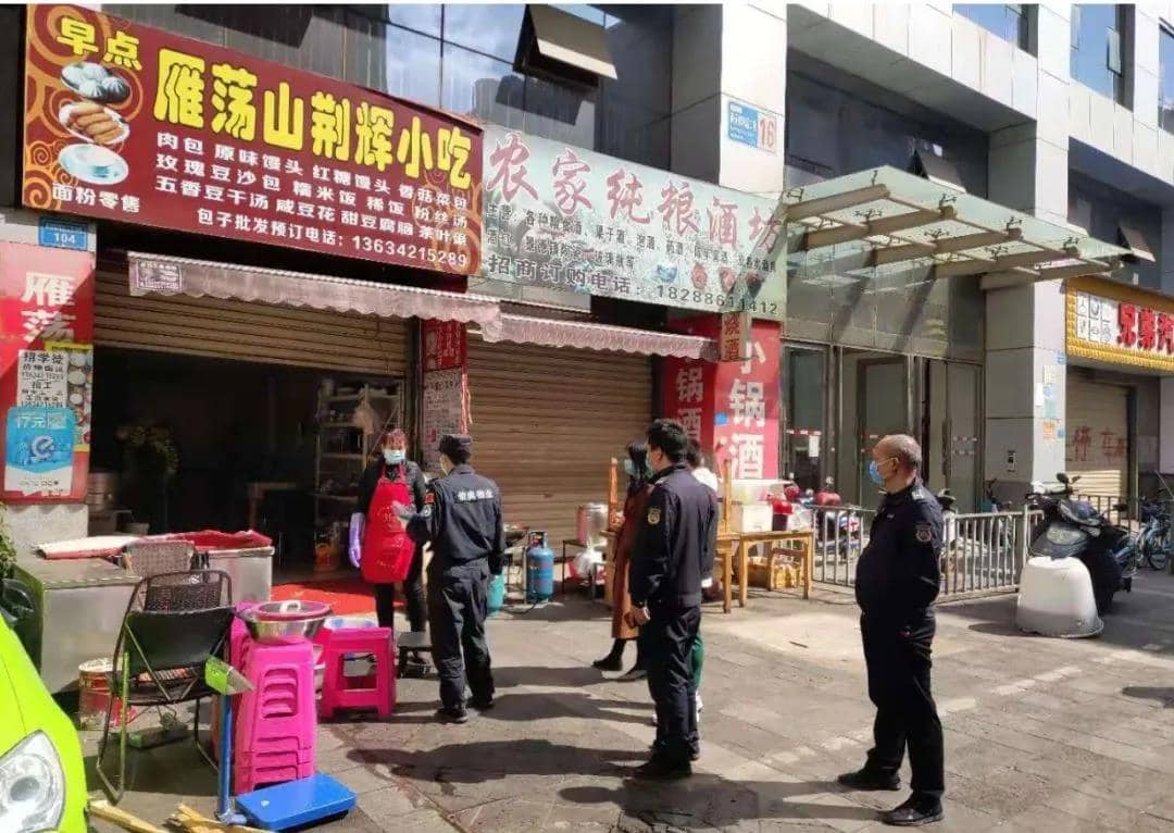 圖:某社區聯合城管、派出所、物業等部門對轄區復工企業進行排查