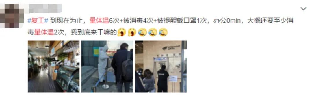 然而企業復工以后,很多員工在返程過程中卻發現并不是那么容易。出門需要開據醫學健康證明,然后一路過五關斬六將,中途經過其它省份還要隨時做好異地隔離的準備,好不容易闖關成功了,到了居住地,還要面臨14天的隔離。部分人在到達所在省市之后,先是集中隔離,然后到居住地后社區又要求隔離14天,這樣的重復的隔離嚴重的降低的工作效率,對于加快復工復產的腳步并沒有任何的作用,好不容易等到隔離結束了,卻被告知錯峰上班,上崗率不能超過50%……現在才發現,上班竟是如此之難啊!
