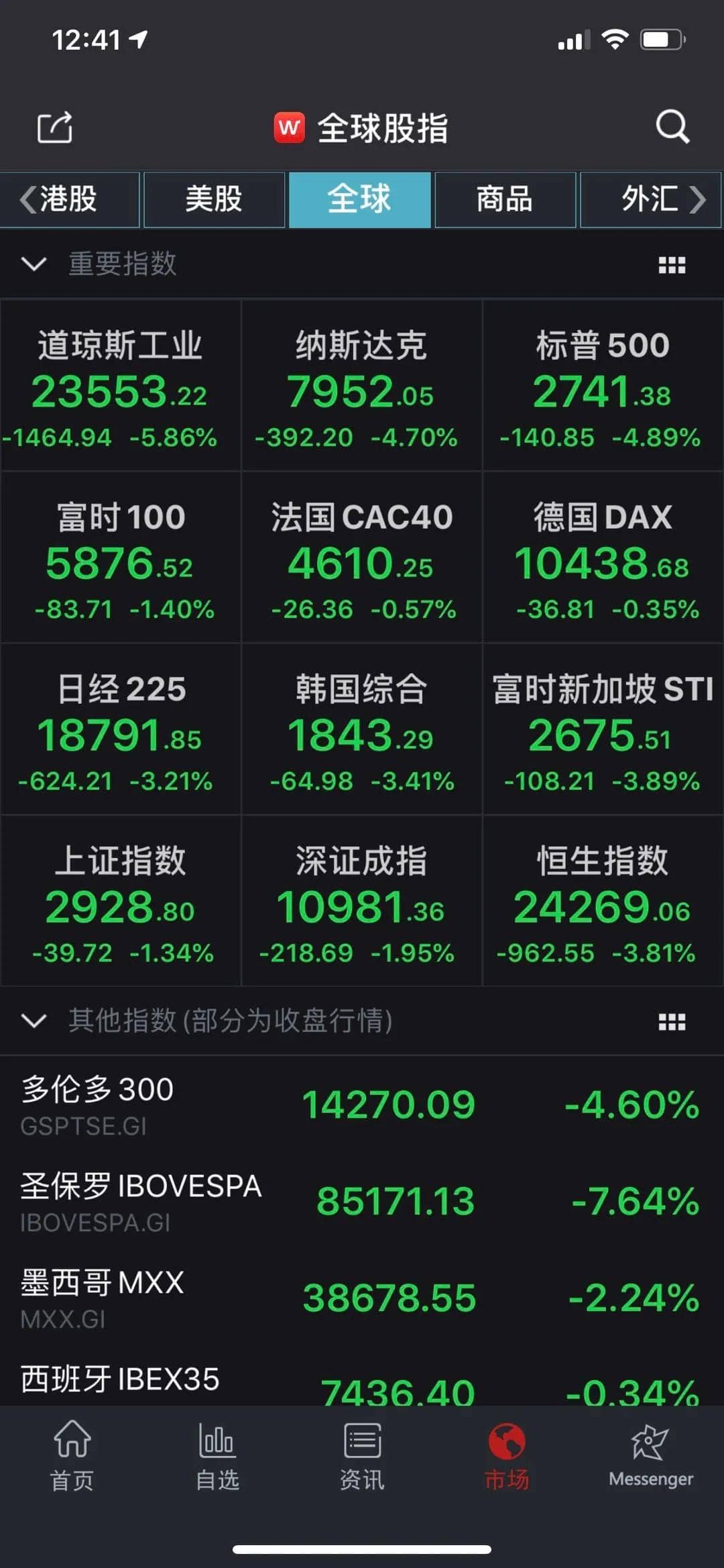 當地時間3月11日,美股三大股指迅速下跌。截至收盤,道指跌1464.94點,跌幅5.86%,報23553.22點,陷入技術性熊市;納指跌392.20點,跌幅4.70%,報7952.05點;標普500指數跌140.85點,跌幅4.89%,報2741.38點。盤中三大股指均陷入技術性熊市。