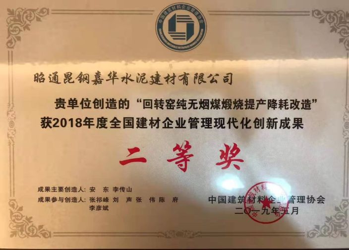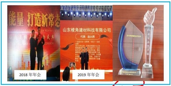 2020年1月17日,在昭通昆鋼嘉華水泥建材有限公司年會上山東棱角建材科技有限公司再次獲得了“年度最佳合作單位獎”。兩年的合作,昭通昆鋼嘉華憑借扎實的管理和技改帶來的技術經濟指標改善,連續獲得了云水集團頒發的最大獎——“年度最佳效益獎”。