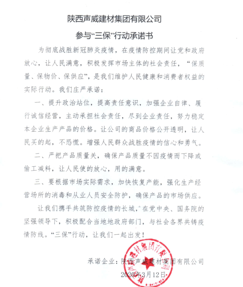 陜西聲威建材集團有限公司參與“三保”行動承諾書